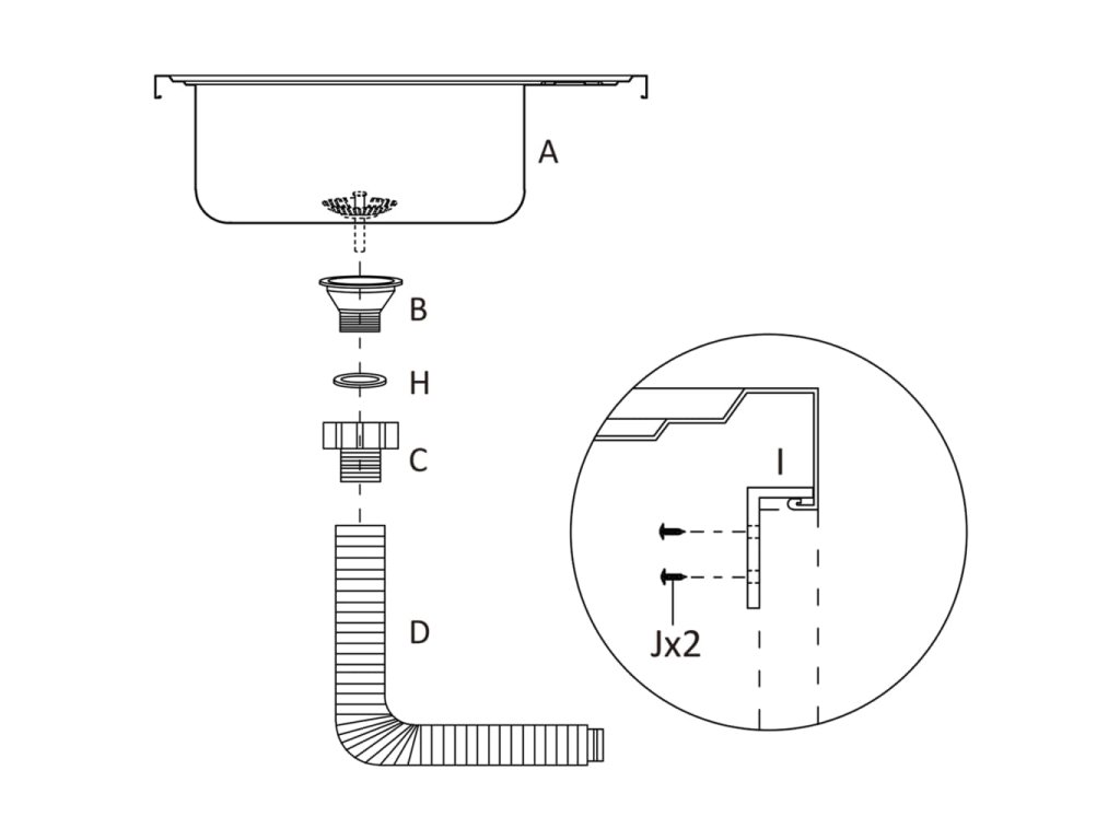 Dřez je vyroben z nerezové oceli, takže výborně vzdoruje teplu, poškrábání a nárazům a také se snadno čistí. Dřez s extra silnými bočními panely je určený pro montáž shora na skříňku. Praktický odkapávač slouží k odkládání umytého nádobí. Je vybaven odtokovým potrubím a otvory na vodovodní baterii na obou stranách, takže se může umístit na jakoukoli stranu.Jelikož je dřez plně oboustranný, lze jej umístit na levou, nebo na pravou stranu.