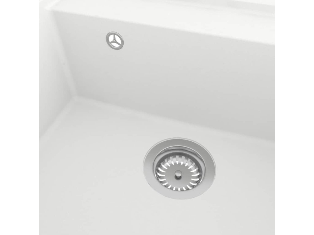 Dřez je vyrobený z kvalitní žuly, která je odolná vůči teplu, poškrábání i nárazům a snadno se čistí. Součástí balení je rovněž sítko na odpad pro snadné odstranění nečistot. Přepadový otvor má průměr 90 mm.