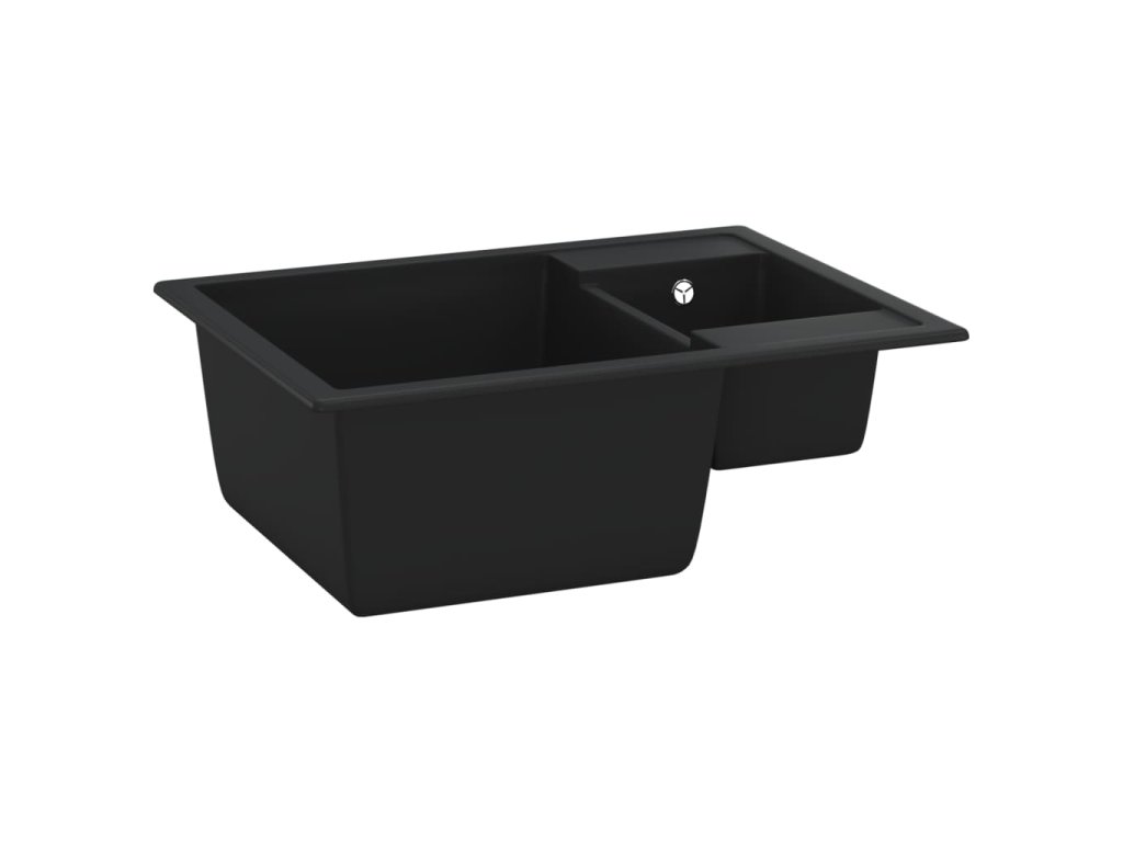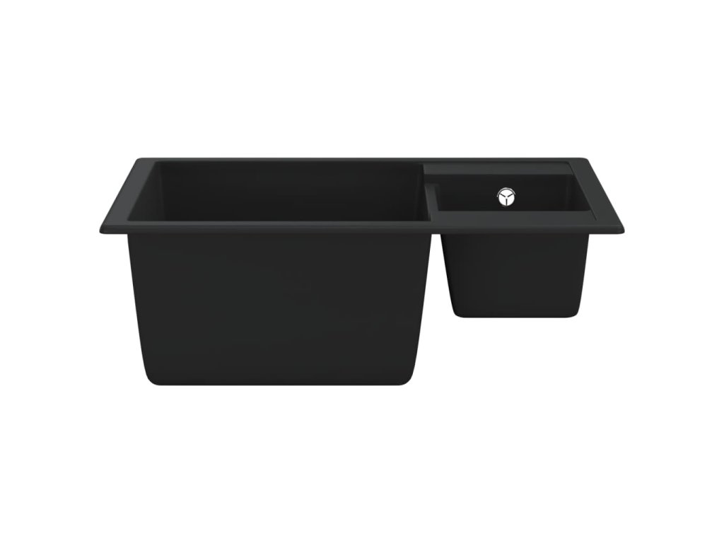 Kuchyňský dřez s přepadem otvorem dvojitý černý žula