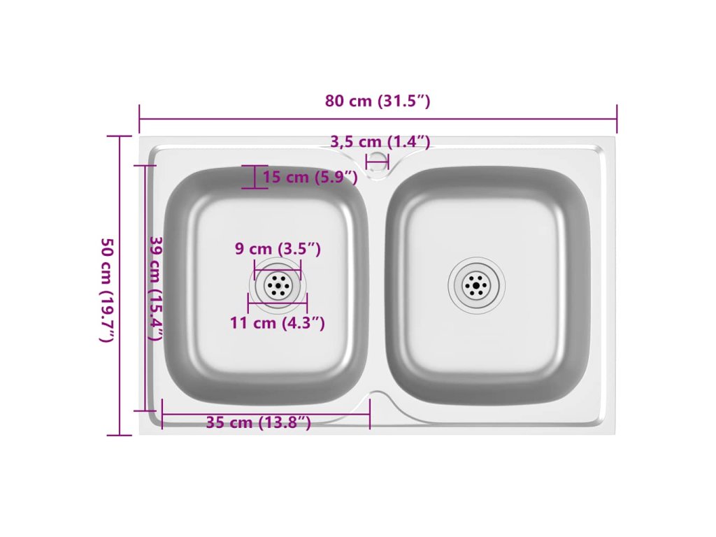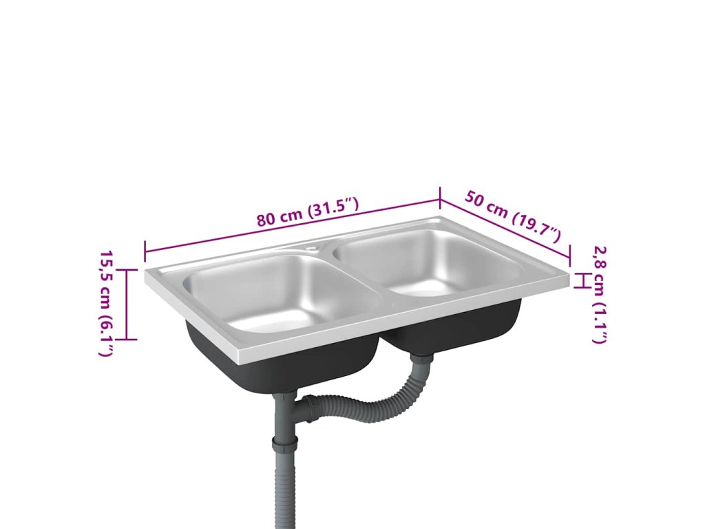 Kuchyňský dvojitý dřez stříbrný 800x500x155 mm nerezová ocel