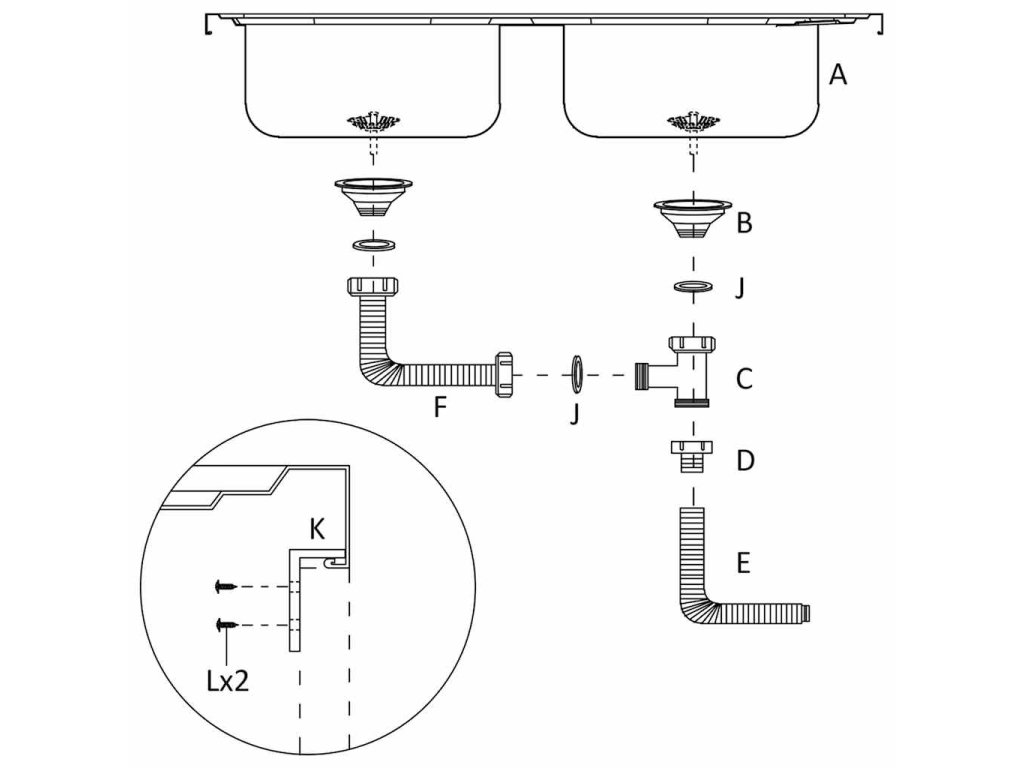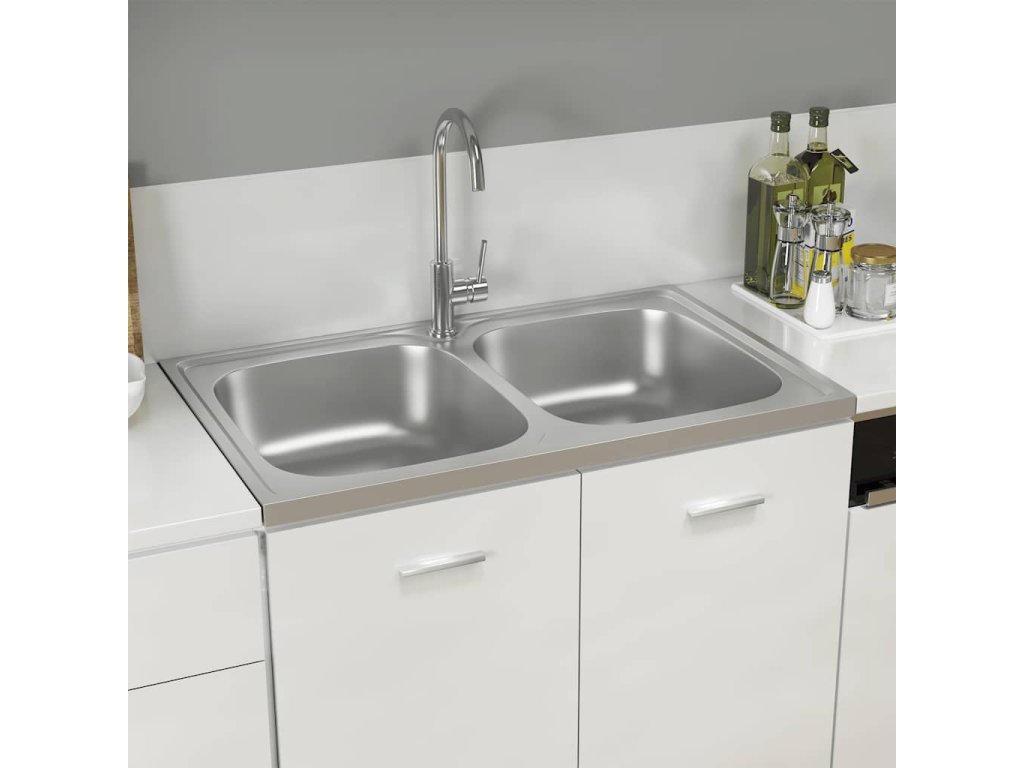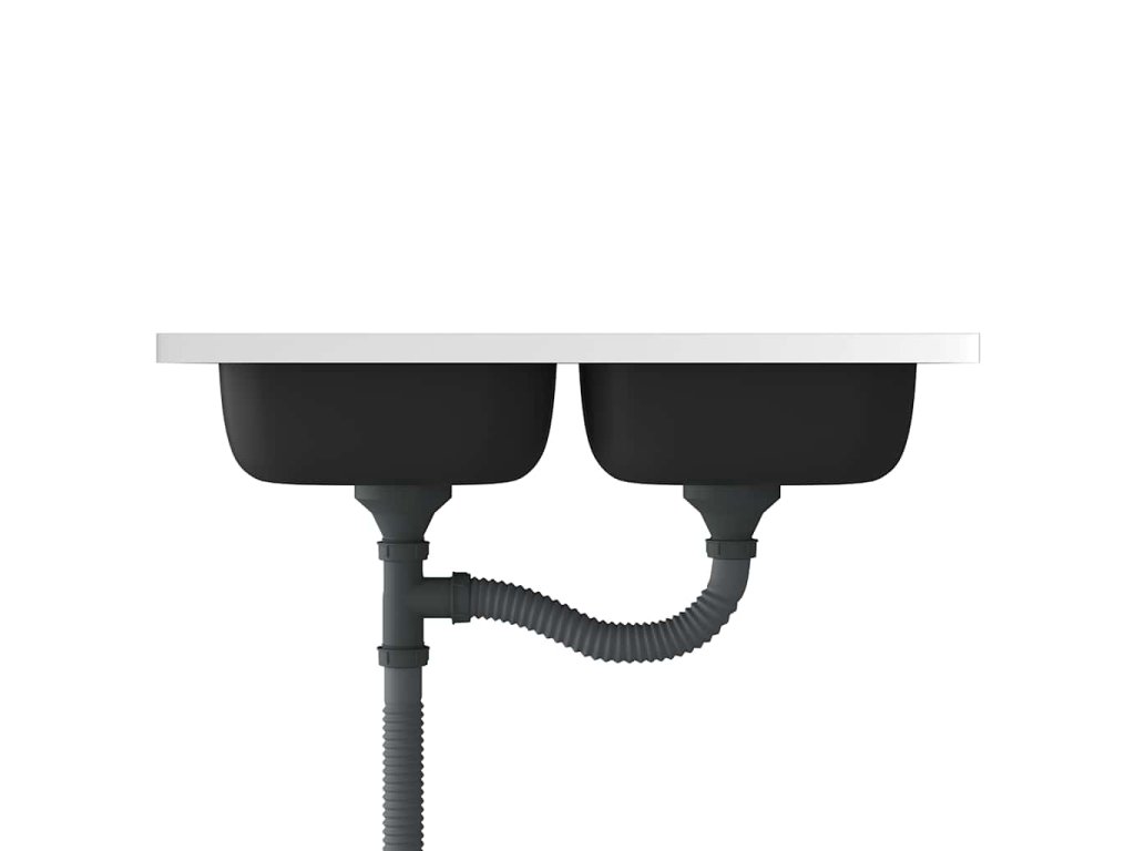 Tento kuchyňský dřez s dvojitým umyvadlem a odkapávací soupravou je ideálním doplňkem ke stávajícímu vybavení kuchyně.