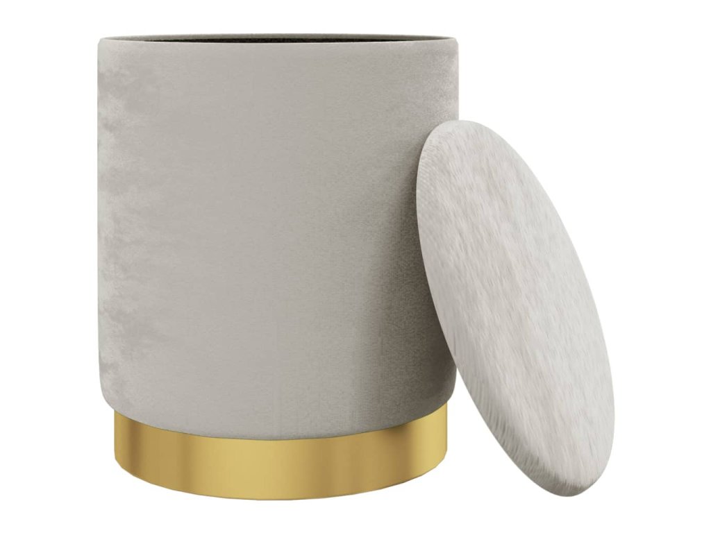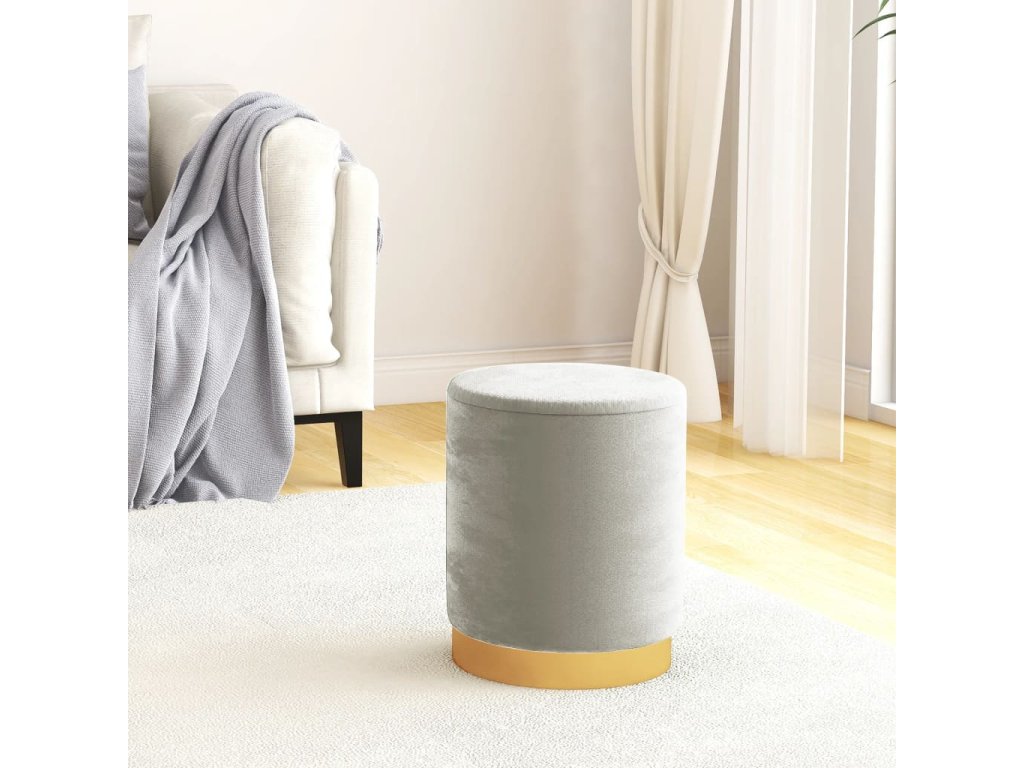 Kulatá stolička s úložným prostorem světle šedá samet 31 x 37 cm