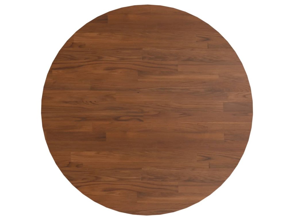 - Ošetřený povrch: Kulatá stolní deska byla ošetřena tmavou barvou, je tedy připravena k použití a není nutná žádná další povrchová úprava.