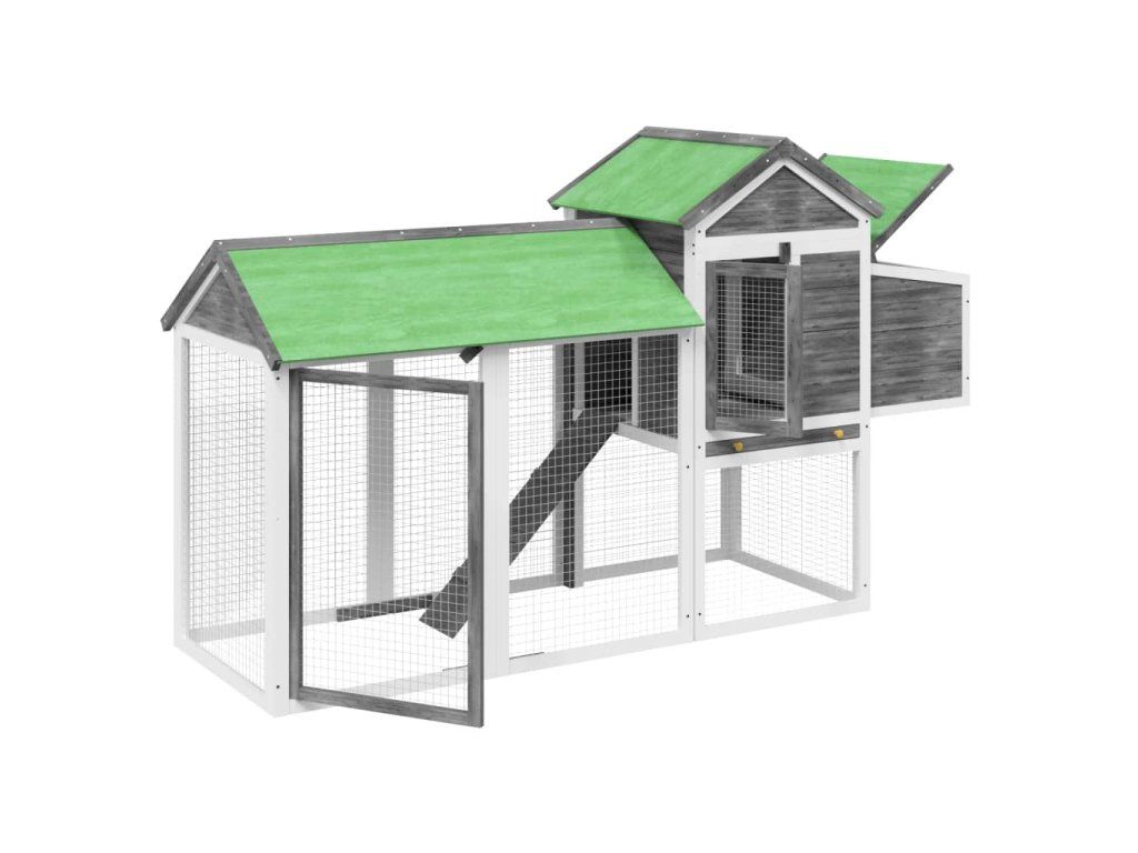 Kurník šedý 193 x 65 x 117 cm masivní borové dřevo