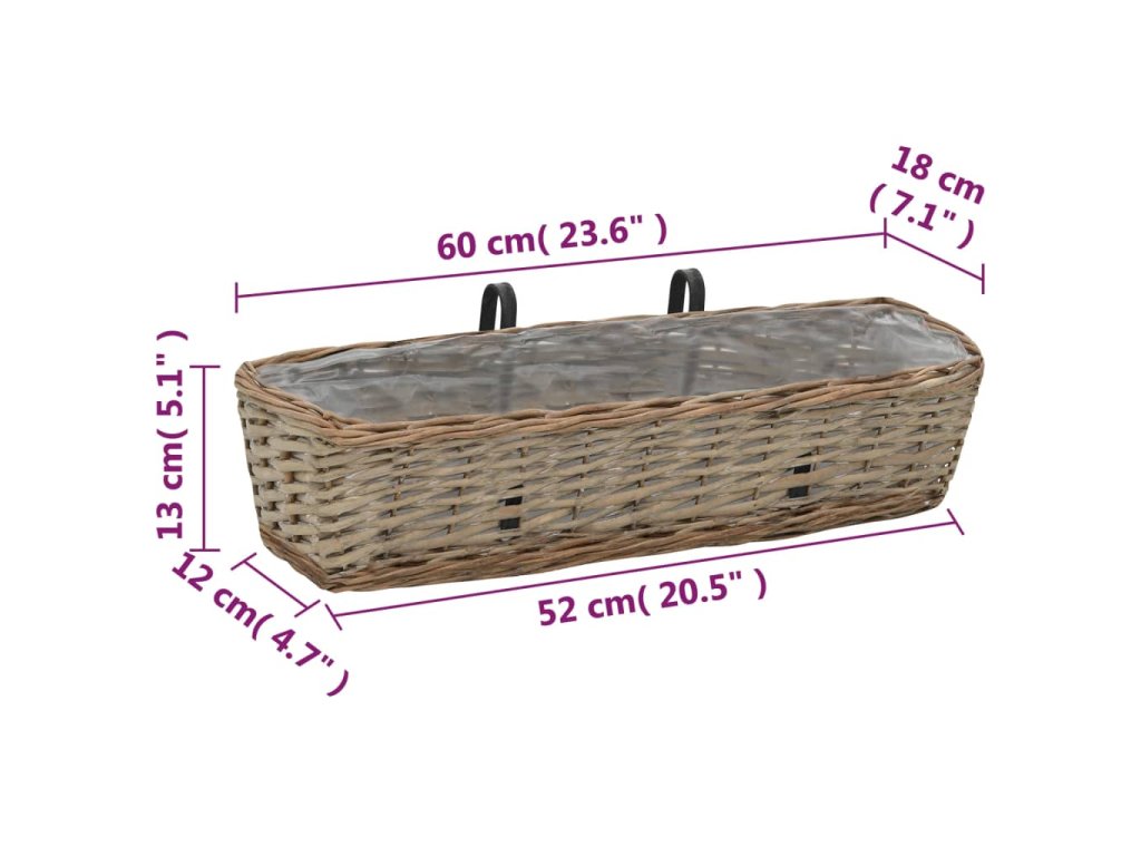 Náš proutěný květináč vám poskytne ideální místo, kam si na balkoně, zahradě či terase můžete zasadit zeleninu, bylinky a květiny. Zahradní květináč na zábradlí je vyrobený z proutí s PE výstelkou a oplývá venkovským a tradičním šarmem. Je vybavený háky, za které ho snadno zavěsíte.