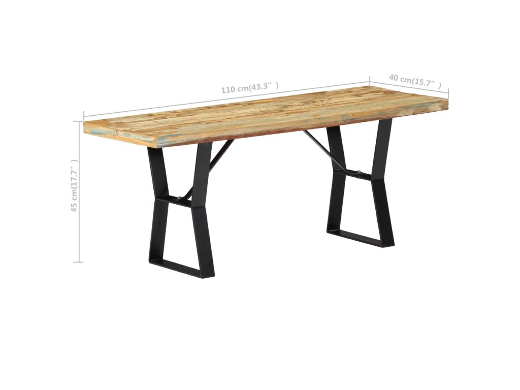 Jídelní lavice je vyrobená z masivního recyklovaného dřeva, takže je také vysoce stabilní a odolná. Recyklované dřevo má vlastnosti různých druhů dřeva, jako je teak, mangovník, akácie atd. Takové dřevo má již svůj věk, je zvětralé a vysušené, takže se nesmršťuje a neohýbá. Každý krok výrobního procesu, ať už je to leštění, barvení nebo lakování, je prováděn s největší péčí. Silné ocelové nohy s práškovým nástřikem zvyšují stabilitu lavice. Lavici snadno smontujete.