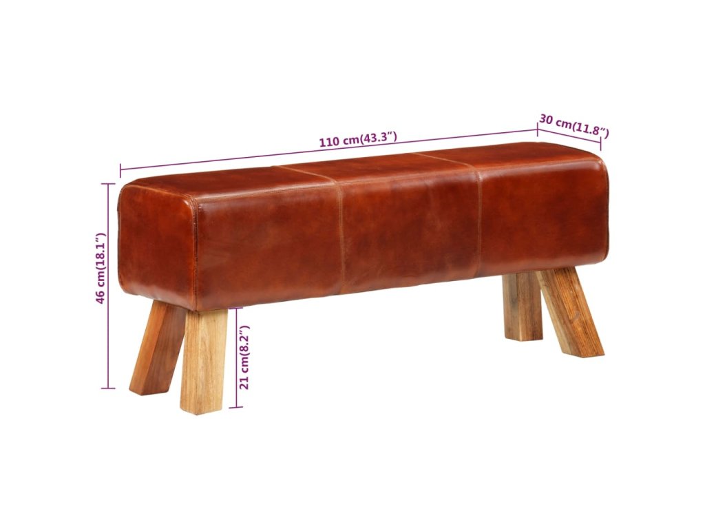 Lavice gymnastický kůň hnědá 110 cm pravá kůže a mangovník