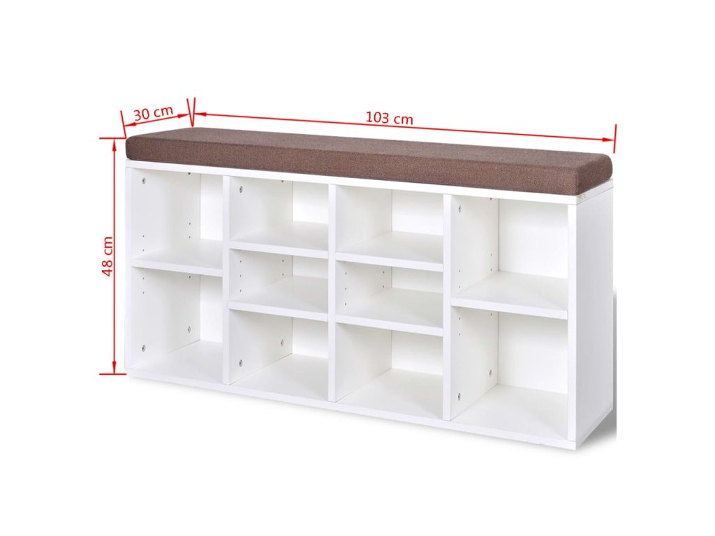 Lavička poskytuje dostatečný prostor pro uskladnění 10 párů bot. Její horní strana je čalouněná látkou a polstrovaná pěnou, takže při zouvání a obouvání můžete pohodlně sedět. Botník je vyroben z vysoce kvalitních materiálů, takže je velmi robustní a odolný.