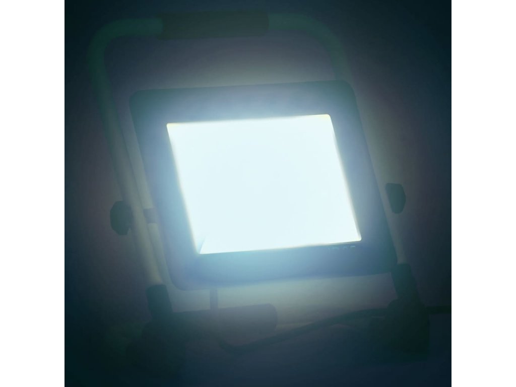 Pracovní světlo má hliníkové pouzdro a skleněný kryt, odvádí tedy dobře teplo a má nízkou hmotnost. Se světelným tokem 7 000 lm a úhlem vyzařování 120° zajišťuje dokonalé osvětlení. Reflektor navíc vyzařuje světlo o barevné teplotě 6 000 K, která zajišťuje optimální světelné podmínky v okolí vašeho domova. Světlo je vyrobeno se stabilním rámem z ocelových trubek s ergonomickou rukojetí, takže se snadno přenáší. Když se zrovna nepoužívá, dá se složit. Je energeticky úsporné a zároveň můžete těžit z dlouhé životnosti až 50 000 hodin.