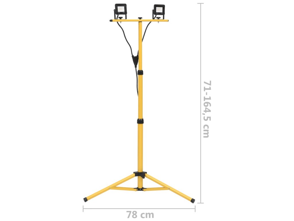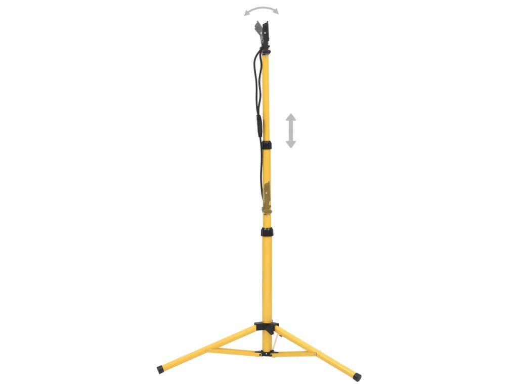 Pracovní světlo má hliníkové pouzdro a skleněný kryt, odvádí tedy dobře teplo a má nízkou hmotnost. Se světelným tokem 1 400 lm a úhlem vyzařování 120° zajišťuje dokonalé osvětlení. Reflektor navíc vyzařuje světlo o barevné teplotě 3 000 K, která zajišťuje optimální světelné podmínky v okolí vašeho domova. Pracovní světlo je podepřeno ocelovou trojnožkou, což mu dodává na robustnosti a stabilitě. Výšku si můžete nastavit podle vlastních preferencí. Vzhledem k pevně připojenému 3m napájecímu kabelu se zástrčkou je ideální lampu postavit do místnosti.