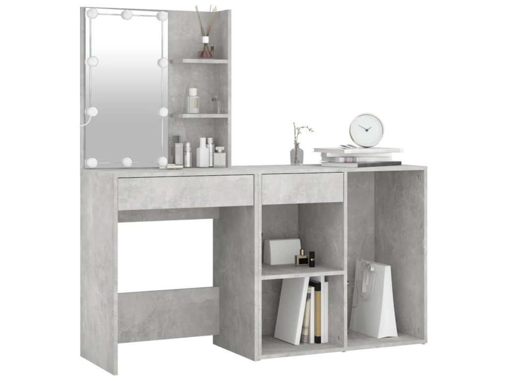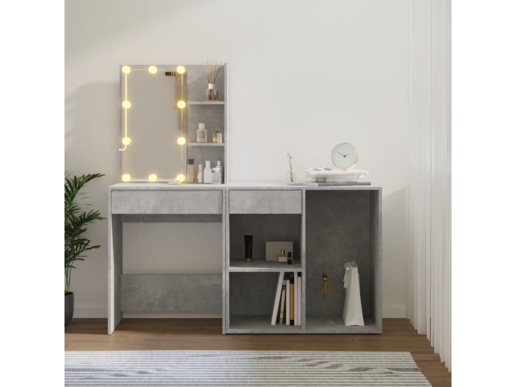 LED toaletní stolek se skříňkou betonově šedý kompozitní dřevo