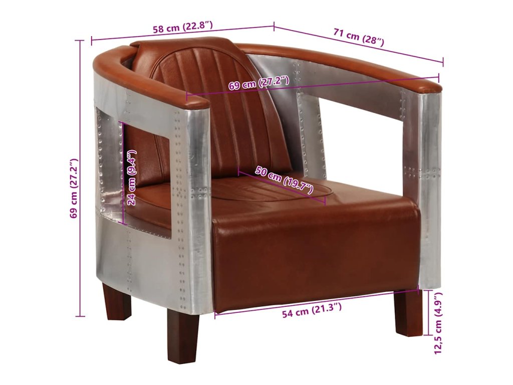Křeslo je vyrobeno z kvalitní pravé kůže, a tak vašemu interiéru dodá nejen na luxusu, ale také vám poskytne značné pohodlí. Hliníkové područky přispívají k robustnosti křesla a spolu se silně polstrovaným čalouněním vám nabízí mimořádně pohodlné sezení.