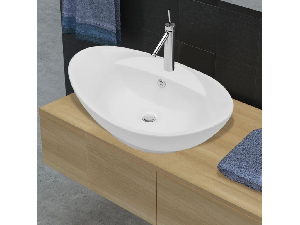 Luxusní keramické oválné umyvadlo s přepadem a otvorem na baterii