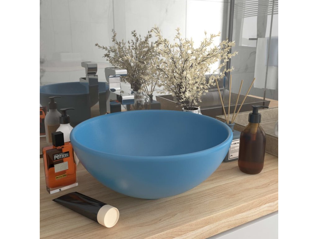 Luxusní umyvadlo kulaté matné světle modré 32,5x14 cm keramické