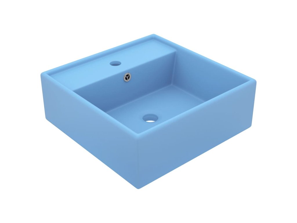 Luxusní umyvadlo přepad čtvercové matné světle modré 41x41 cm