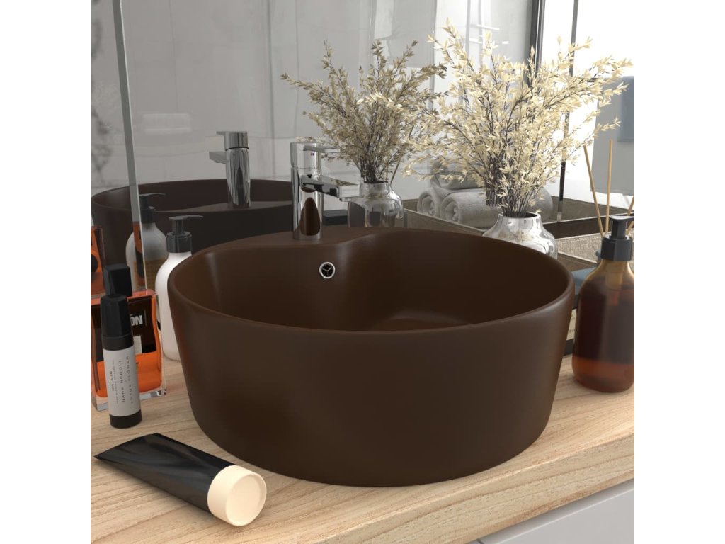 Luxusní umyvadlo přepad matné tmavě hnědé 36 x 13 cm keramické