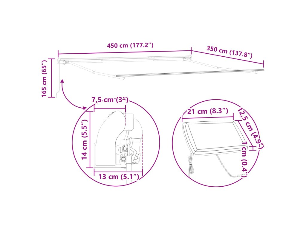 Tato výsuvná sluneční clona je skvělý mix stylu a funkce. Nabízí výborné stínění pro tvé venkovní prostory. S čistými liniemi a minimalistickým stylem je ideální na balkony nebo terasy, super pro relaxaci. Je navržená tak, aby vydržela počasí, a díky robustnímu ručnímu mechanismu si ji jednoduše vytáhneš nebo schováš podle potřeby. Ideální pro pohodové posezení nebo klidné chvíle venku, rozhodně přispěje k příjemné atmosféře s vestavěnými LED světly.
