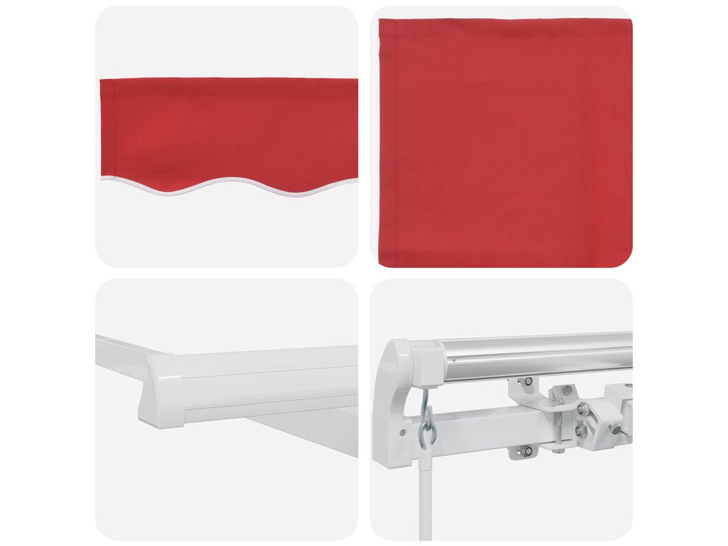 Tato výsuvná markýza je skvělým stínícím prvkem s moderním designem, což ji dělá ideální pro současné venkovní prostory. Vyrobená z odolného polyesteru a kovu, s hezkou červenou barvou, skvěle se hodí do každé zahrady nebo na terasu. Její výsuvný systém se snadno přizpůsobuje slunečnímu záření, což ji činí ideální na letní sezení nebo na relaxaci venku. Užívejte si flexibilitu a atraktivní design, zatímco zkrášlujete svůj exteriér s touto praktickou markýzou.