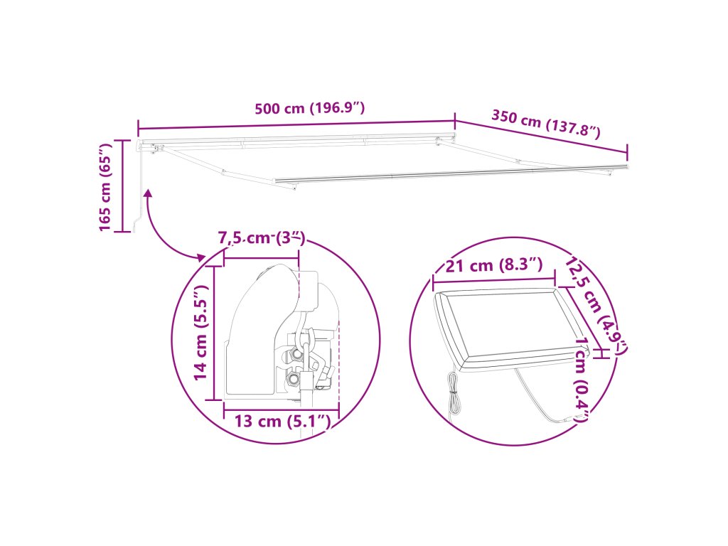 Tahle moderní výsuvná markýza je skvělým řešením pro venkovní stínění. Díky svému minimalistickému designu dodá každé zahradě nebo terase šmrnc. S ručním mechanismem si můžete snadno nastavit, kolik stínu chcete, a vestavěná LED světla dodají romantickou atmosféru večer.