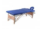 Modrý skládací masážní stůl se 3 zónami a dřevěným rámem