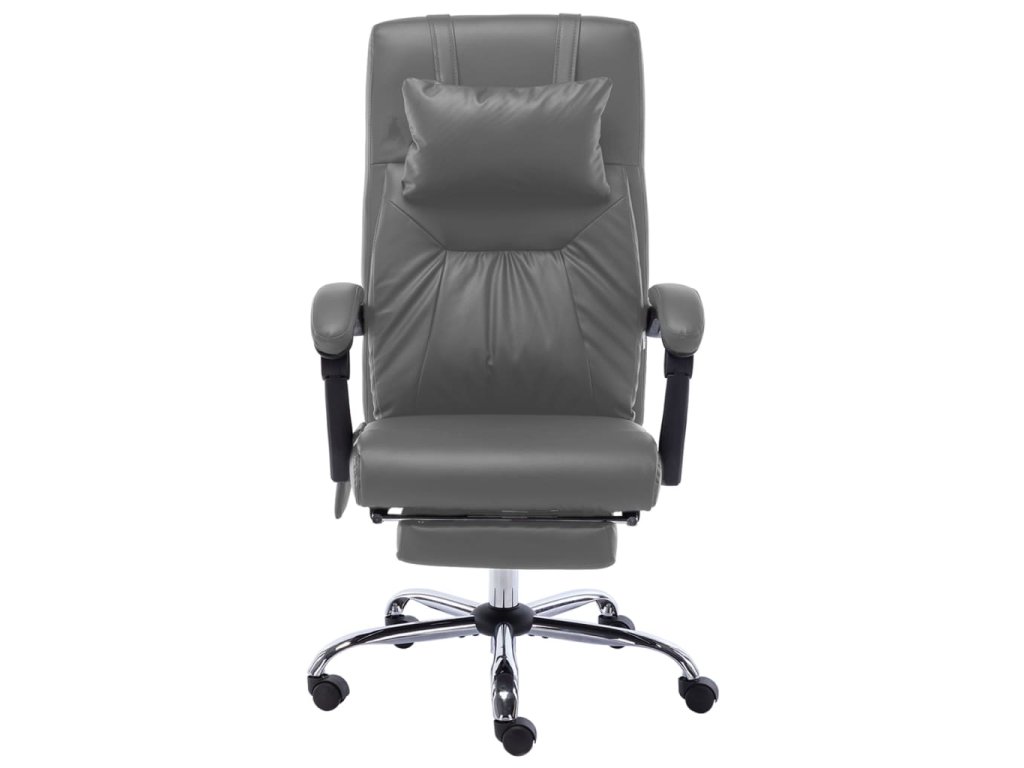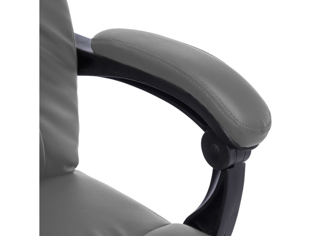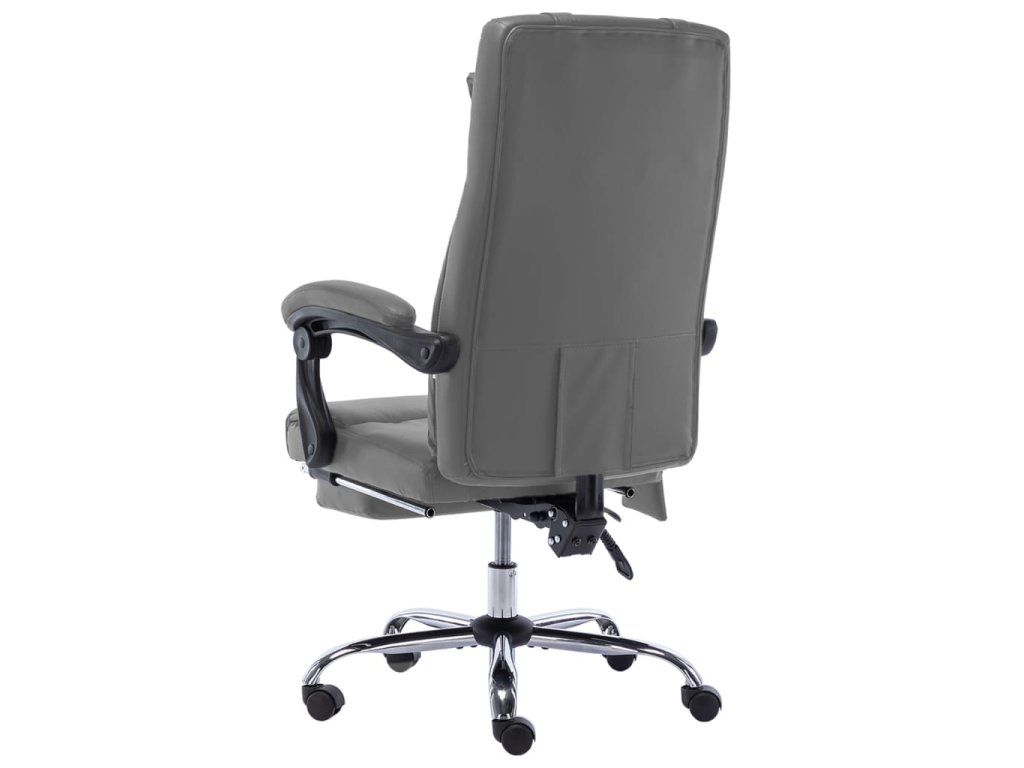 Židle má vysoké opěradlo a šíjový polštář s jednobodovou masáží, zaoblené područky, podnožku a hustě polstrovaný sedák, aby se vám na ní dobře sedělo i během dlouhých pracovních dnů. Její výšku lze nastavit, takže ji bez problémů přizpůsobíte výšce psacího stolu, a dosáhnete tak maximálního pohodlí i zdravé pozice páteře. Polohovací křeslo je vybavené nylonovými pojezdovými kolečky pro snadný pohyb. Navíc se dá sklopit do úhlu 95° až 135°, což vám umožní najít si tu nejpříjemnější polohu k odpočinku.