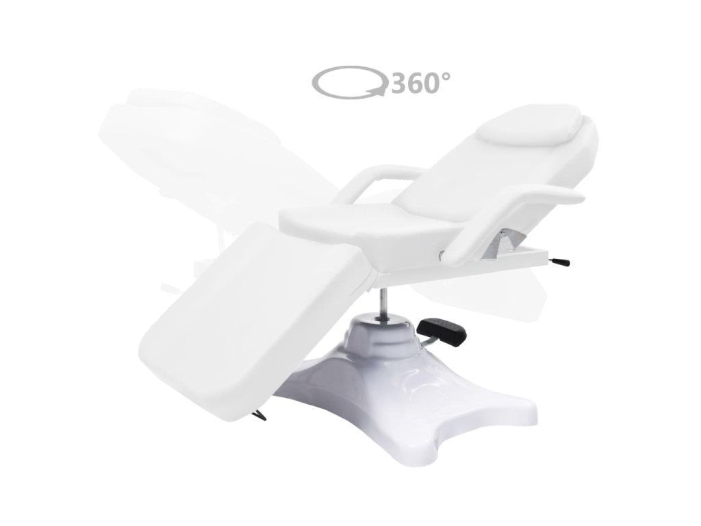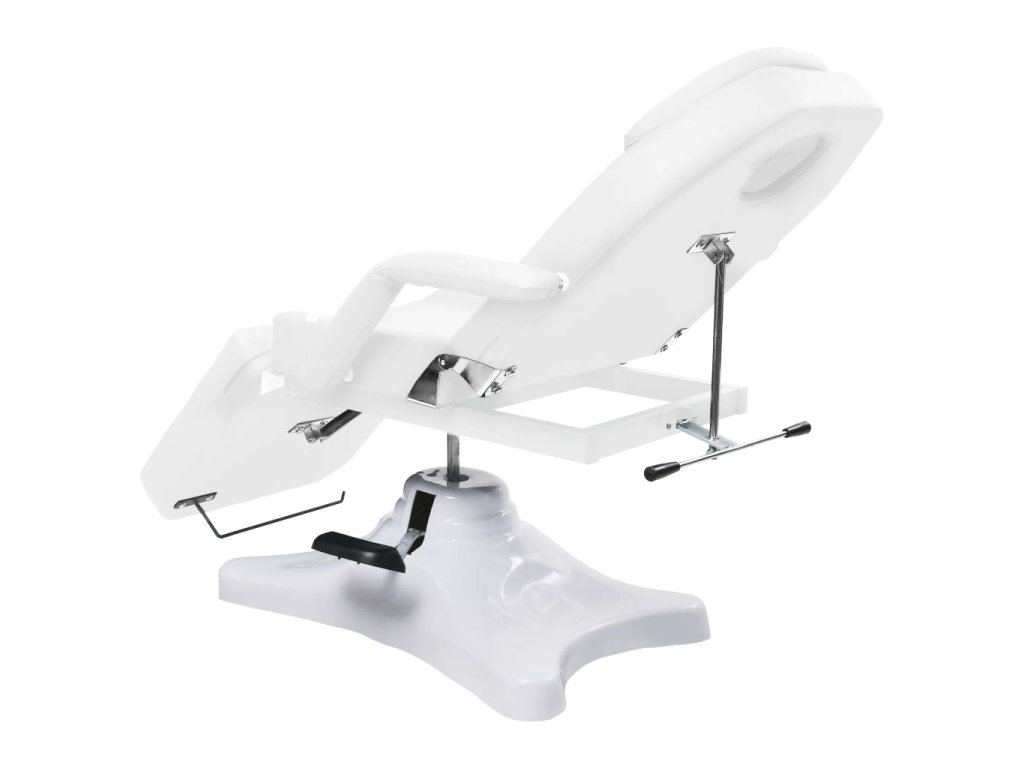 Podušky na podnožce, sedáku a opěradle jsou polstrované hustým pěnovým molitanem a čalouněné pohodlným PVC materiálem, takže toto kosmetické křeslo zaručuje dlouhotrvající odolnost. Jeho lehký design poskytuje veškeré pohodlí kosmetického lehátka a maximální flexibilitu. Podstavec z FRP (plast vyztužený vlákny) zaručuje salónnímu lehátku vysokou stabilitu. Je vybavené plynovým zvedacím mechanismem a odnímatelnou loketní opěrkou. Má také nastavitelné opěradlo a opěrku nohou. Masážní stůl se může otáčet o 360 stupňů.