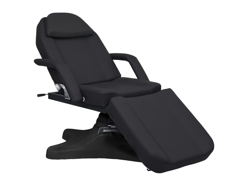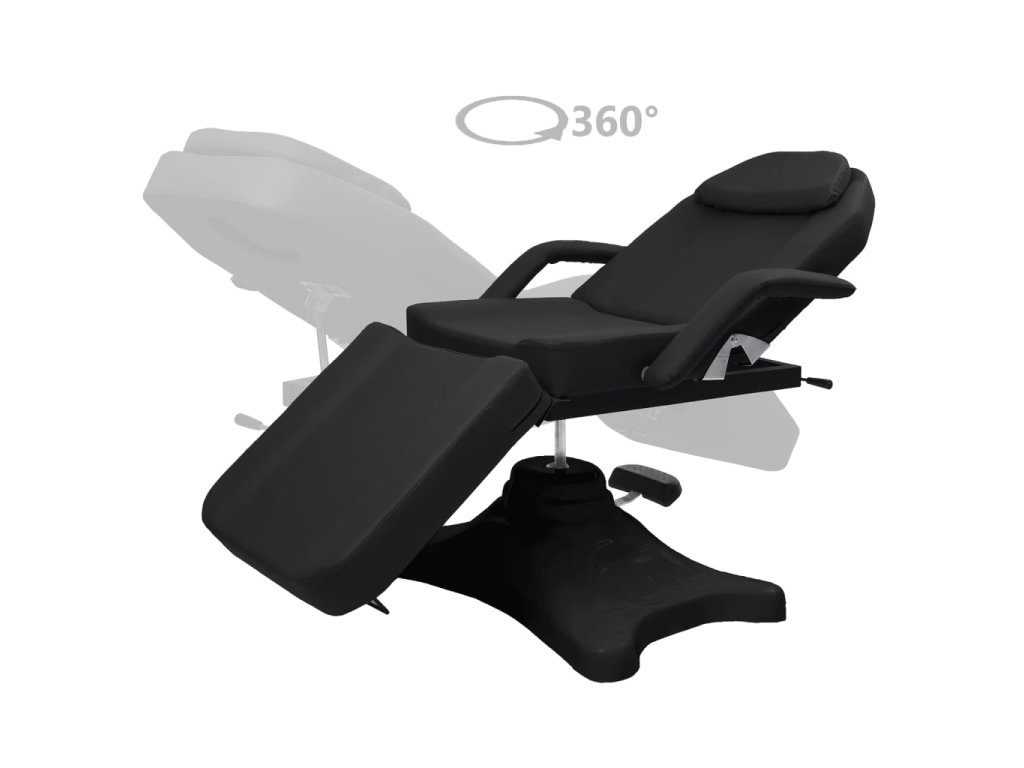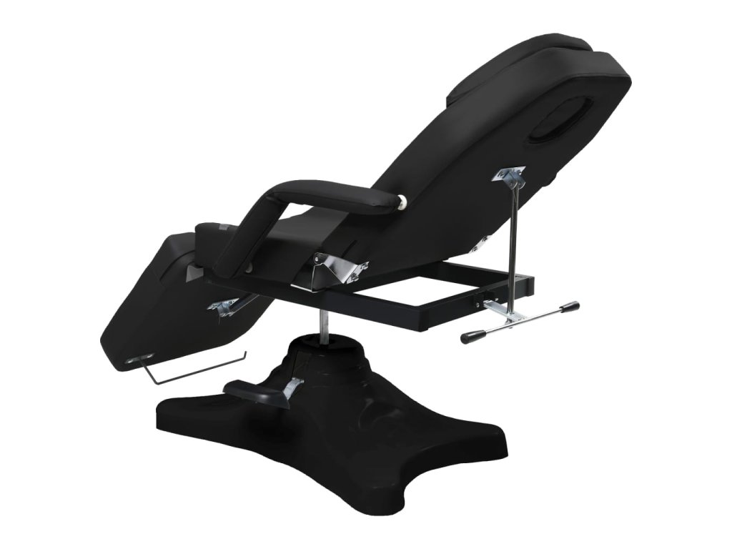 Podušky na podnožce, sedáku a opěradle jsou polstrované hustým pěnovým molitanem a čalouněné pohodlným PVC materiálem, takže toto kosmetické křeslo zaručuje dlouhotrvající odolnost. Jeho lehký design poskytuje veškeré pohodlí kosmetického lehátka a maximální flexibilitu. Podstavec z FRP (plast vyztužený vlákny) zaručuje salónnímu lehátku vysokou stabilitu. Je vybavené plynovým zvedacím mechanismem a odnímatelnou loketní opěrkou. Má také nastavitelné opěradlo a opěrku nohou. Masážní stůl se může otáčet o 360 stupňů.