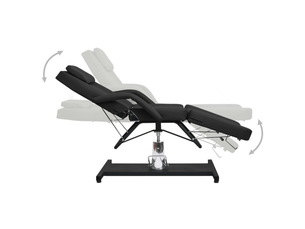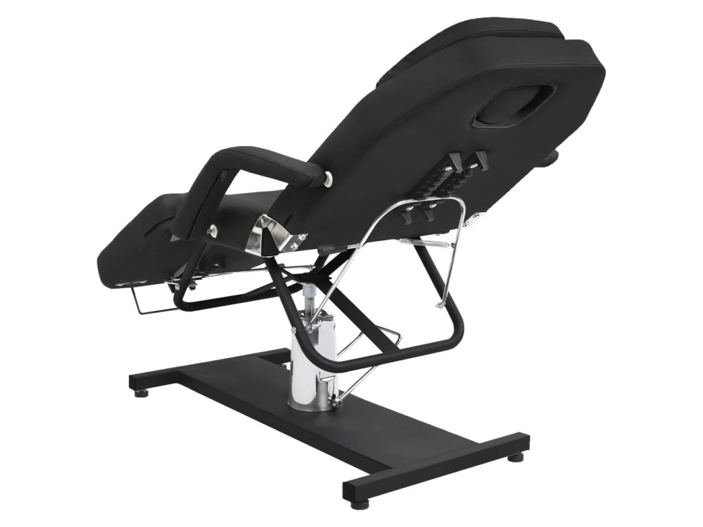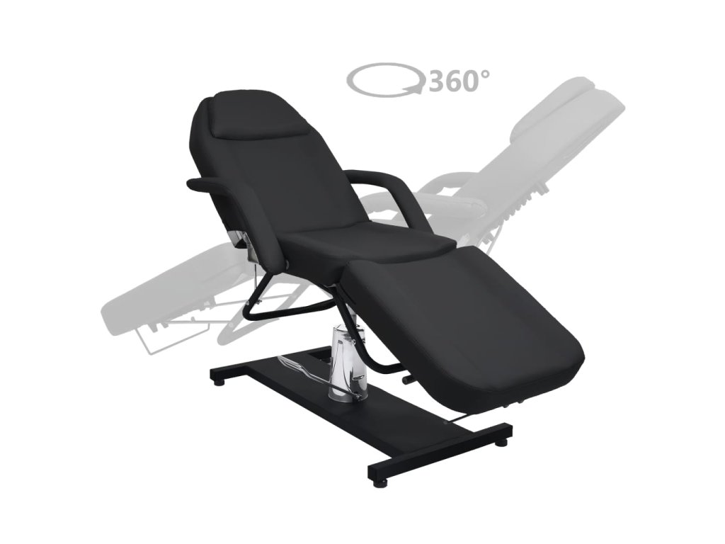 Podušky na podnožce, sedáku a opěradle jsou polstrované hustým pěnovým molitanem a čalouněné pohodlným PVC materiálem, takže toto kosmetické křeslo zaručuje dlouhotrvající odolnost. Jeho lehký design poskytuje veškeré pohodlí kosmetického lehátka a maximální flexibilitu. Železná základna zaručuje salónnímu lehátku vysokou stabilitu. Je vybavené plynovým zvedacím mechanismem a odnímatelnou loketní opěrkou. Má také nastavitelné opěradlo a opěrku nohou. Masážní stůl se může otáčet o 360 stupňů.