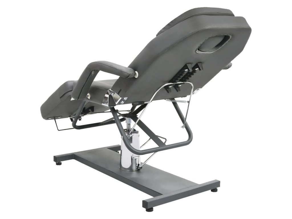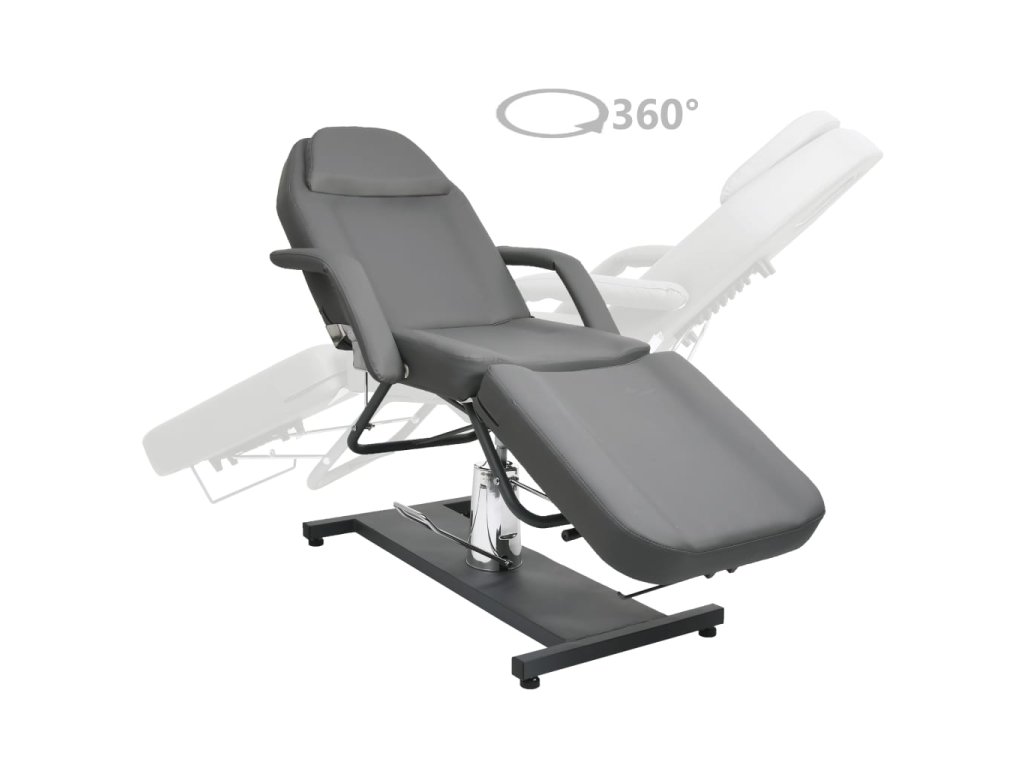 Podušky na podnožce, sedáku a opěradle jsou polstrované hustým pěnovým molitanem a čalouněné pohodlným PVC materiálem, takže toto kosmetické křeslo zaručuje dlouhotrvající odolnost. Jeho lehký design poskytuje veškeré pohodlí kosmetického lehátka a maximální flexibilitu. Železná základna zaručuje salónnímu lehátku vysokou stabilitu. Je vybavené plynovým zvedacím mechanismem a odnímatelnou loketní opěrkou. Má také nastavitelné opěradlo a opěrku nohou. Masážní stůl se může otáčet o 360 stupňů.