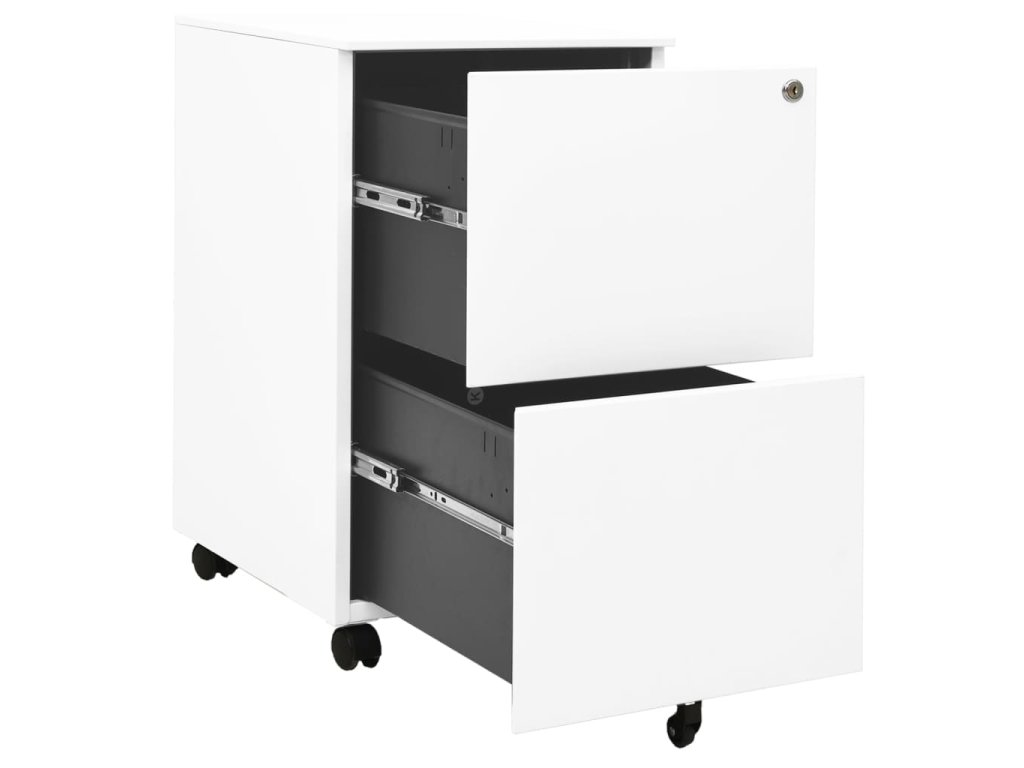 Tato kartotéka je vyrobena z oceli, takže je odolná a snadno se čistí. Disponuje 2 zásuvkami a zámky, takže můžete přehledně třídit soubory do různých kategorií a mít je bezpečně uložené. Každá zásuvka je vybavena 1 odnímatelnou závěsnou tyčí, kterou lze libovolně kombinovat pro uložení souborů formátů letter, legal a závěsné desky velikosti A4. Zásuvky s třídílnými pojezdy s kuličkovými ložisky zajišťují plynulé otevírání a zavírání, i při zvýšené zátěži se zásuvky dají zcela vysunout.