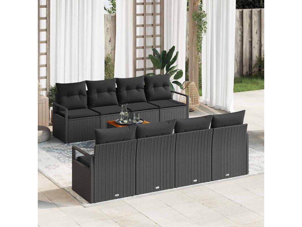 Tato Poly Rattan Zahradní Sedací Souprava vás zve, abyste si užívali lenivé slunné odpoledne na vaší zahradní terase. Navržena v moderním stylu, tato souprava spojuje jednoduchost s funkčností a nabízí čisté linie a minimální ornamentaci. Čtvercový tvar soupravy, harmonicky spárovaný s woven texturou, přináší kousek současné elegance do vašeho venkovního prostoru. Její všeobecný půvab ji činí ideální pro pořádání rodinných setkání nebo pro užívání tichého okamžiku s dobrou knihou.