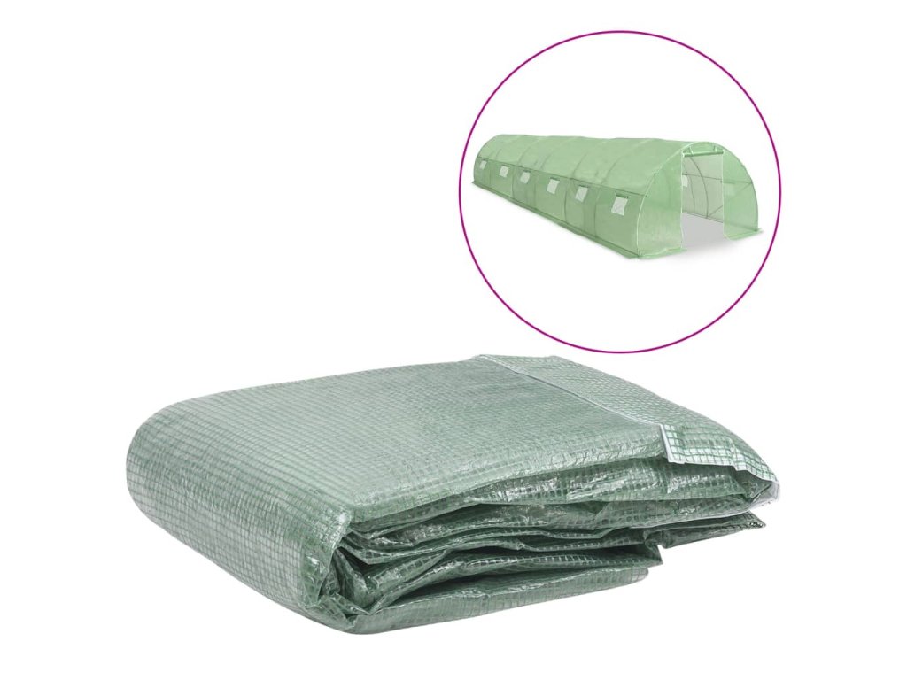 Plachta je vyrobená z PE, který je těžší než standardní síťovina. Tato skleníková plachta disponuje 12 okny pro větrání a 1 dveřmi.