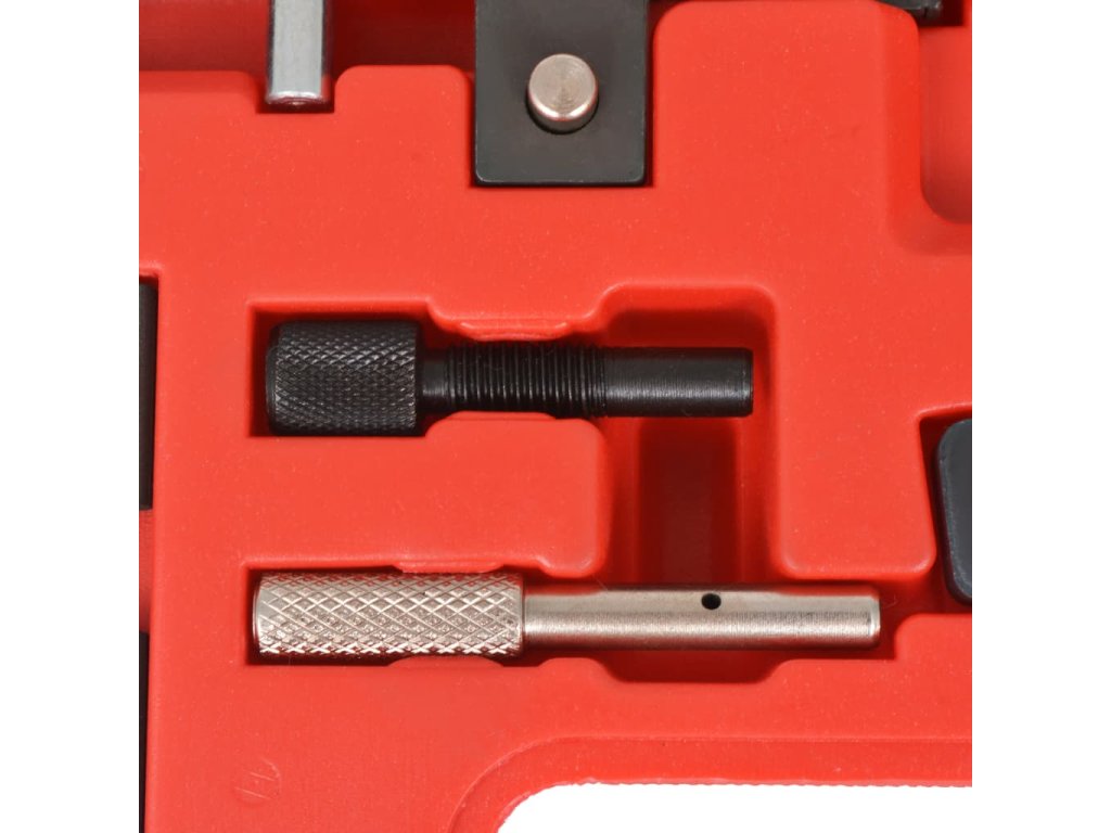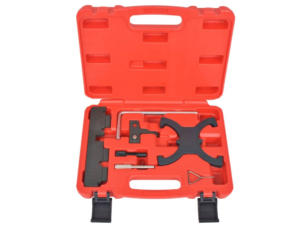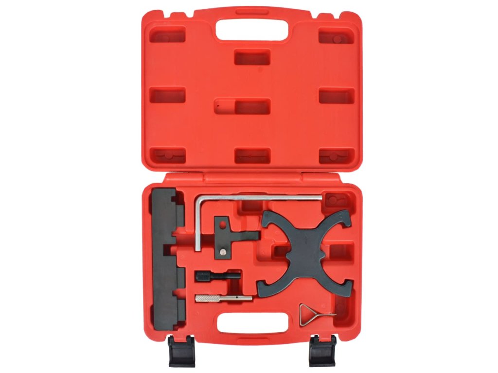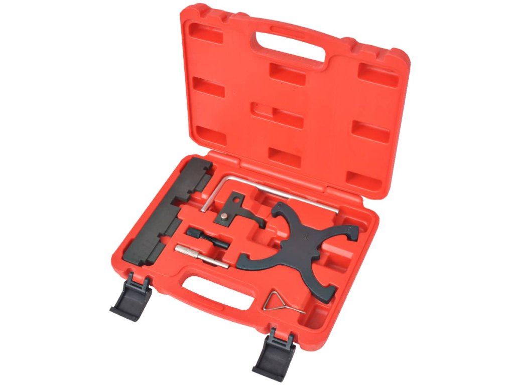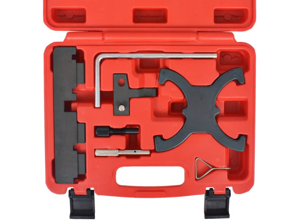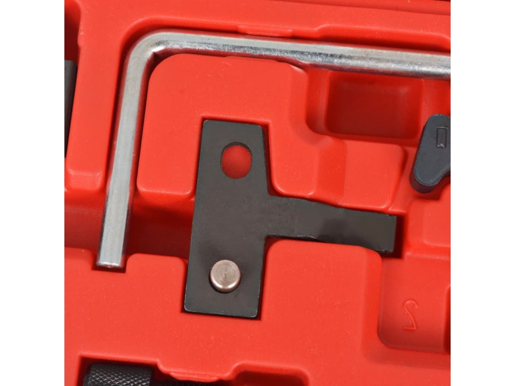 Tato sada nářadí pro časování je vyrobená z vysokopevnostní oceli, která jí dodává na odolnosti a výdrži. Všechny části jsou pro snazší úschovu a přepravu uspořádány v pouzdře z foukaného plastu.