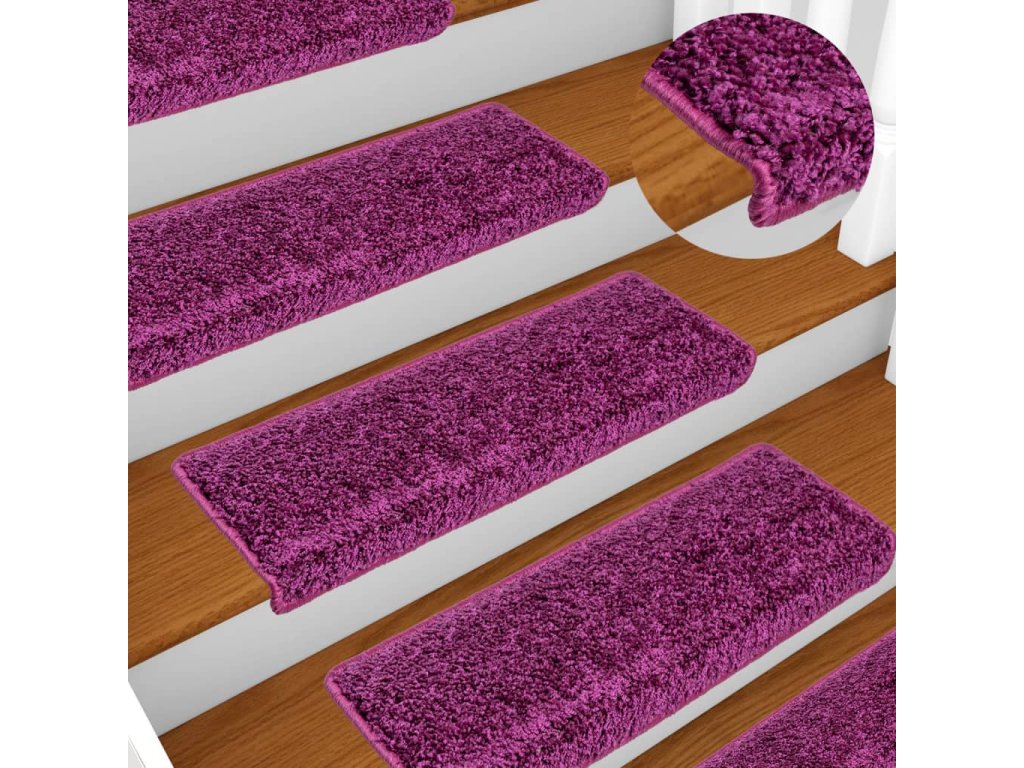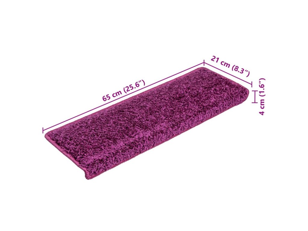 Schodové rohože 10 ks 65 x 21 x 4 cm fialové s obdélníkovým okrajem