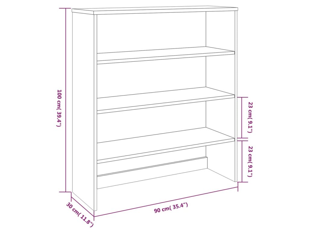 - Výška každé police: 23 cm