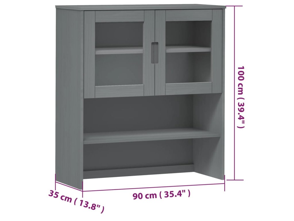 Nástavec na komodu MOLDE šedý 90 x 35 x 100 cm masivní borovice