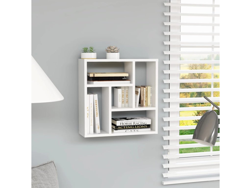 Tato moderní plovoucí police má 5 přihrádek, do kterých si snadno a bezpečně uložíte vaše knihy, DVD nebo cokoliv jiného dle vašich potřeb. Tato nástěnná police, vyrobená ze silného kompozitního dřeva, je robustní a má dlouhou životnost. Můžete ji také snadno očistit vlhkým hadříkem.