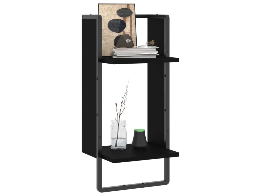 Nástěnná police s tyčí černá 30 x 25 x 65 cm