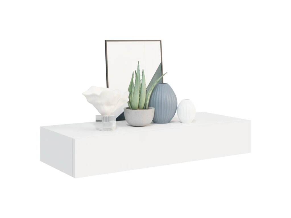Tato plovoucí police je vyrobena z MDF a kovu a je navržena tak, aby vydržela. Nástěnná police se zásuvkou umožňuje uložení drobných předmětů, jako jsou šperky, hodinky, peněženky, klíče atd. Dodá různým obývacím pokojům design a styl a dodá jim světlý pocit.