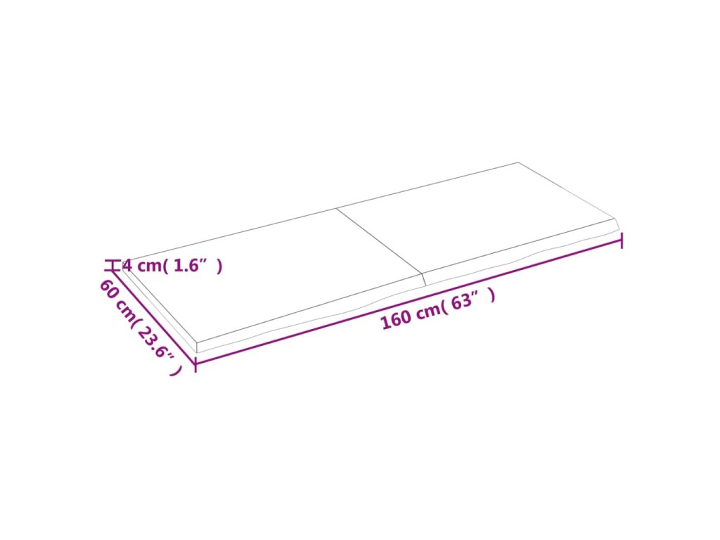 Nástěnná police tmavě hnědá 160x60x(2-4)cm ošetřený masivní dub