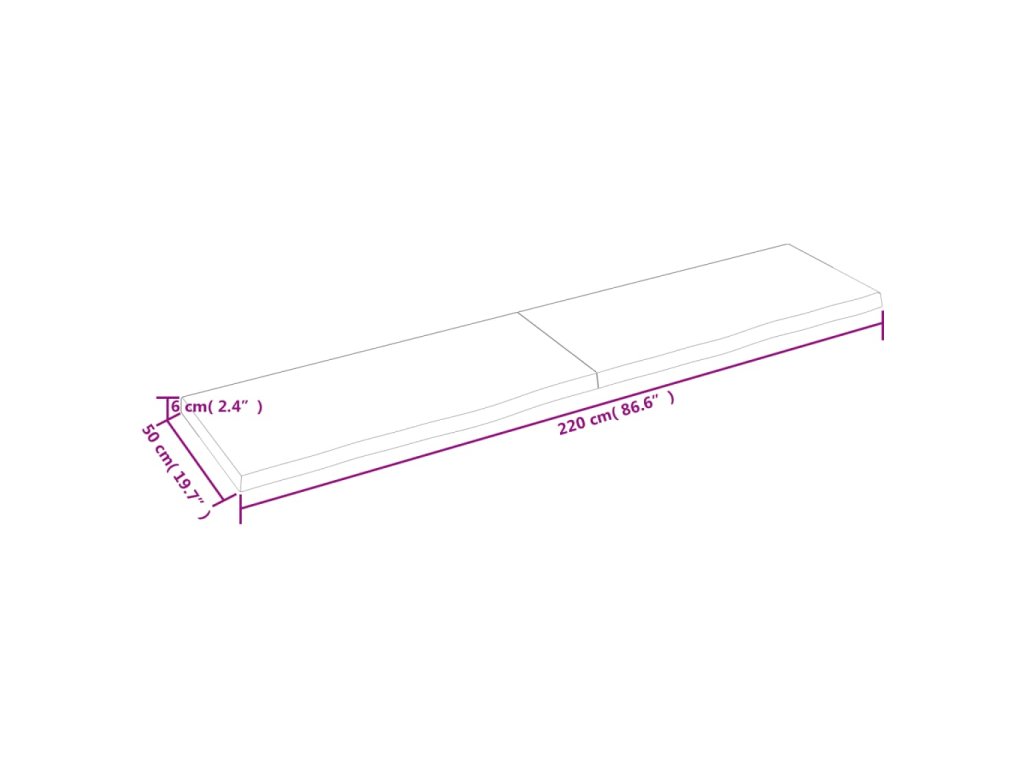 Nástěnná police tmavě hnědá 220x50x(2-6)cm ošetřený masivní dub