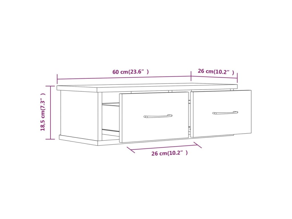 - Rozměry: 60 x 26 x 18,5 cm (Š x H x V)