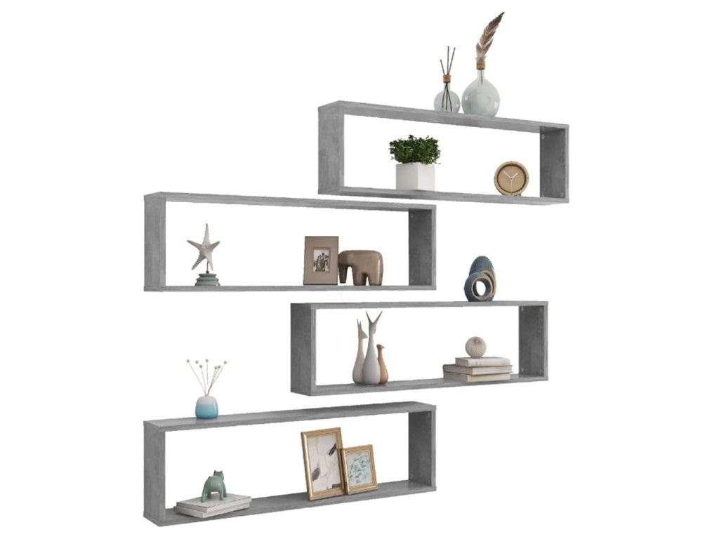 Nástěnné obdélníkové police 4 ks betonově šedé 100 x 15 x 30 cm