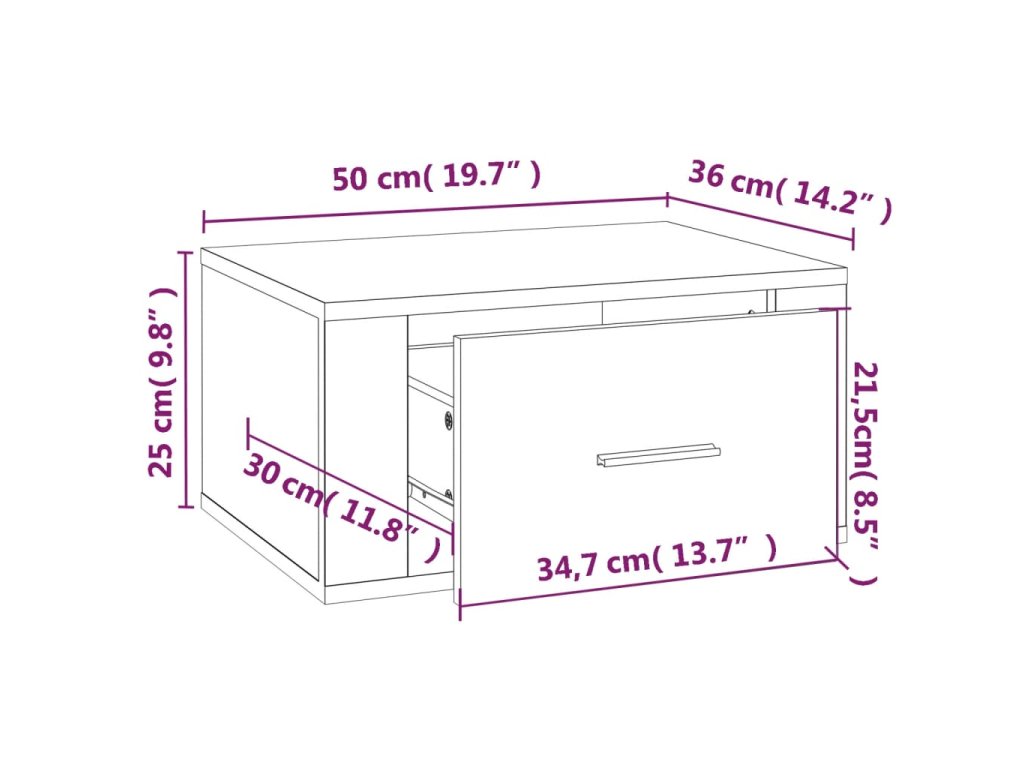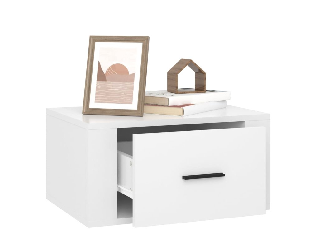 - Robustní horní část: Horní část této závěsné noční skříňky se skvěle hodí k vystavení dekorativních předmětů, zarámovaných obrázků a pokojových rostlin.
