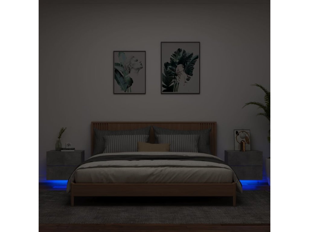 Nástěnné noční stolky s LED osvětlením 2 ks betonově šedé