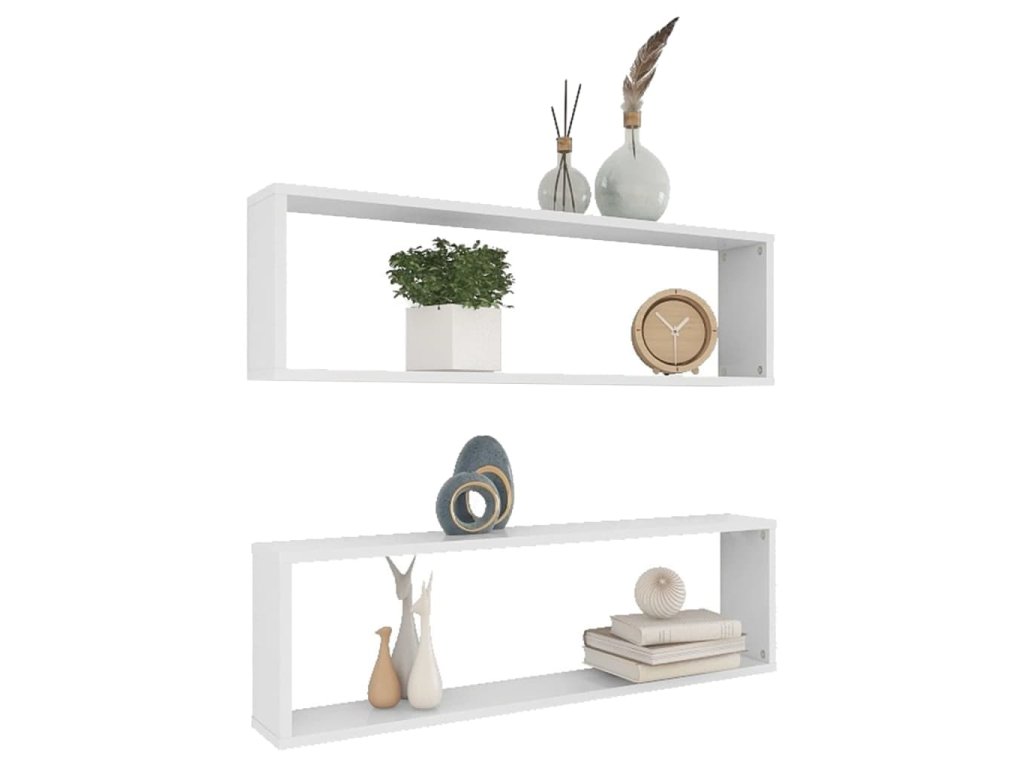 Nástěnné obdélníkové police 2 ks bílé 100 x 15 x 30 cm kompozit