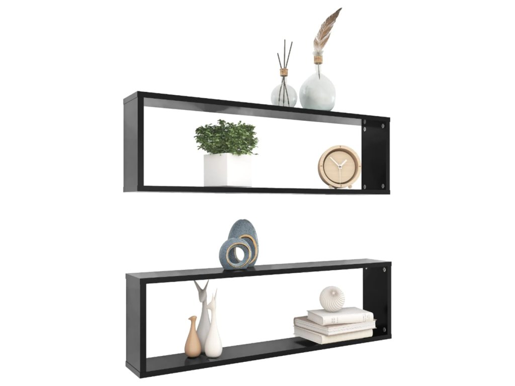 Nástěnné obdélníkové police 2 ks černé 100x15x30 cm kompozit