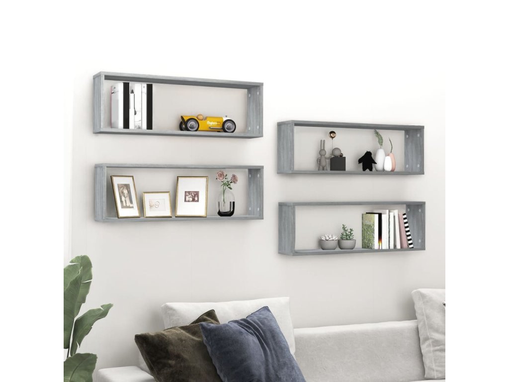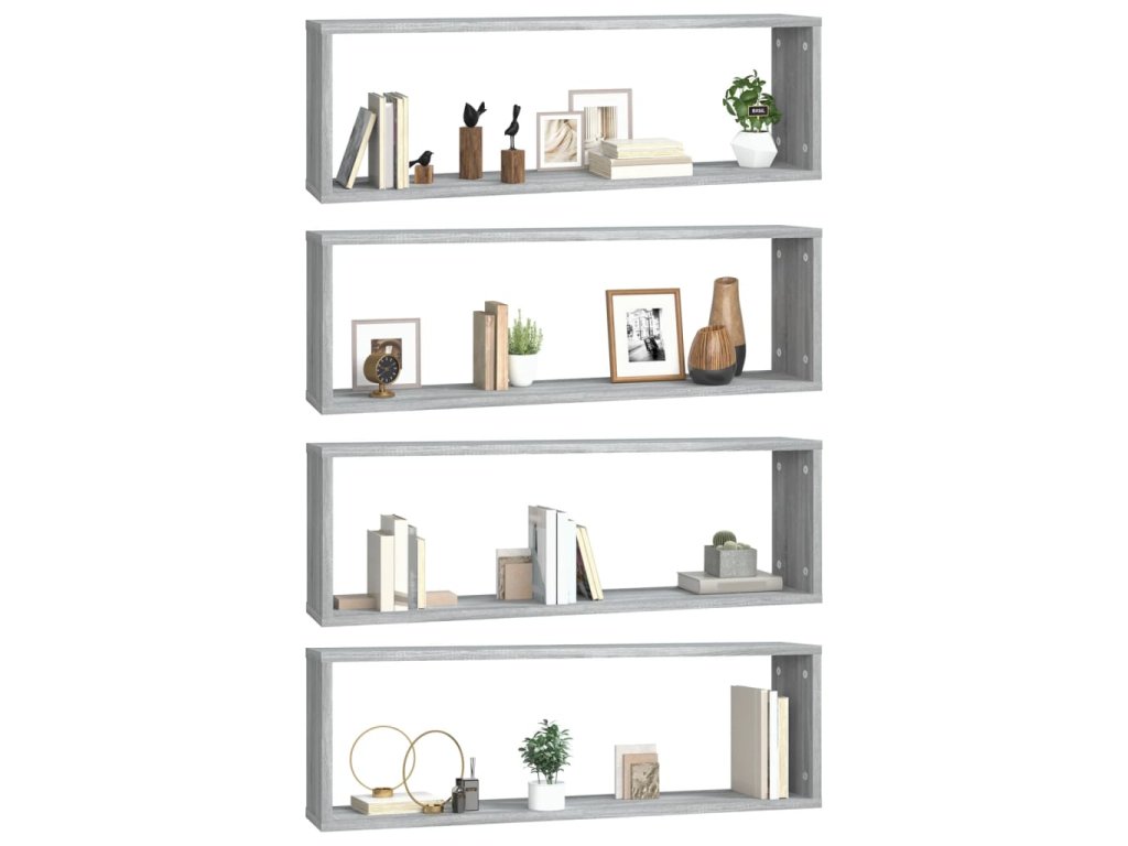 Nástěnné obdélníkové police 4 ks šedé sonoma 80 x 15 x 26,5 cm