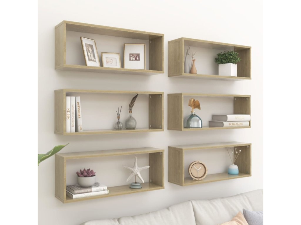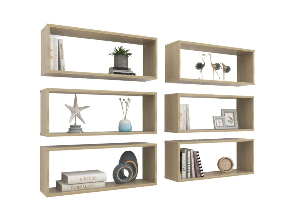 Nástěnné obdélníkové police 6 ks dub sonoma 60x15x23cm kompozit