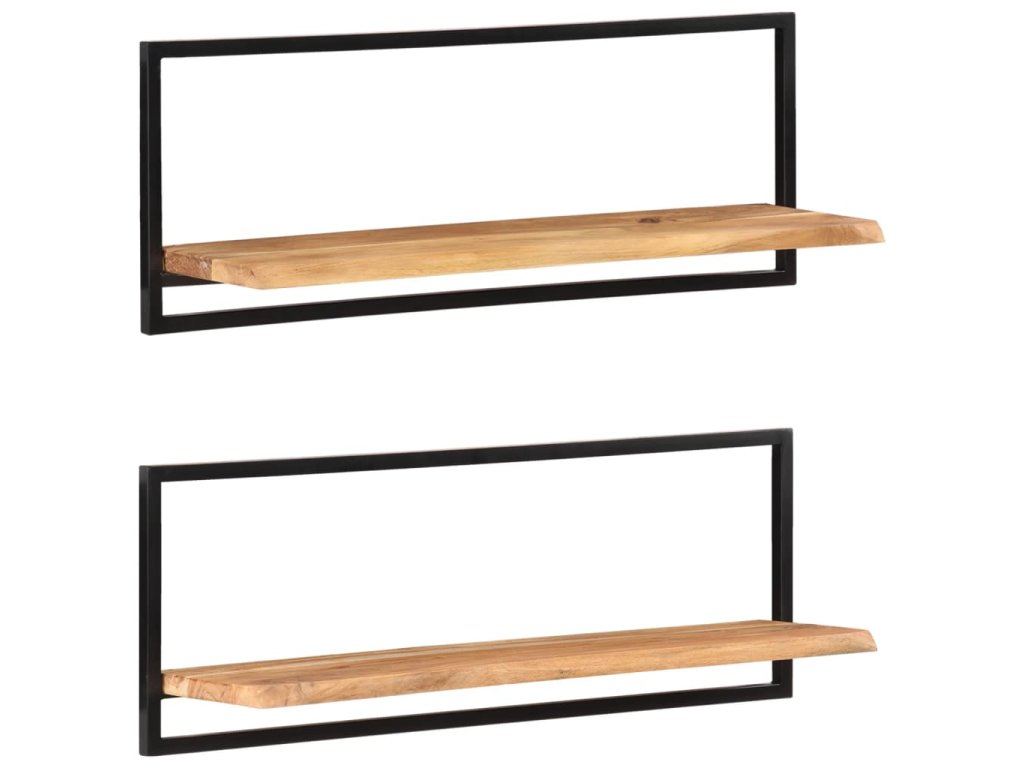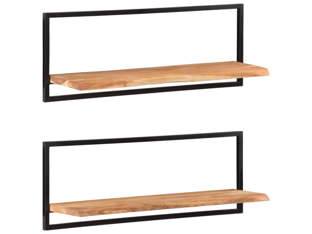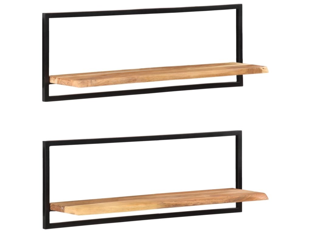 Nástěnné police 2 ks 100 x 24 x 35 cm masivní akácie a ocel
